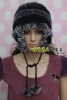 Real rabbit fur hat, fur hats, new fashion design with discoid flowers, rabbit fur knitted by handmade